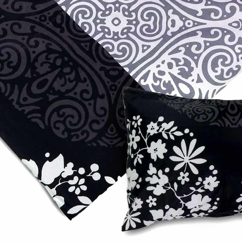 Individuale federe e copripiumino Armonia in bianco e nero. Potete utilizzarli per completare o personalizzare il vostro kit a vostro piacimento.